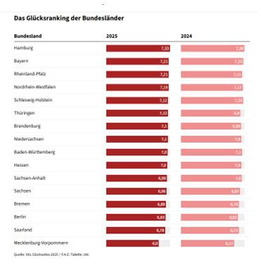 Abbildung 2 - Quelle: SKL Glücksatlas 2025F.A.Z.-Tabelle: cbt.