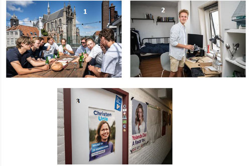 Afbeelding 1 - Bewoners van het studentenhuis waar leden van Minerva wonen, in het centrum van Leiden.