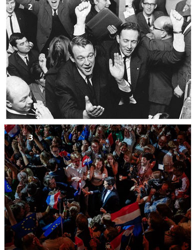 Foto 2 - Een uitgelaten D’66-leider Hans van Mierlo viert de spectaculaire overwinning van zijn jonge partij bij de Tweede-Kamerverkiezingen van 15 februari 1967. Bron Foto ANP.